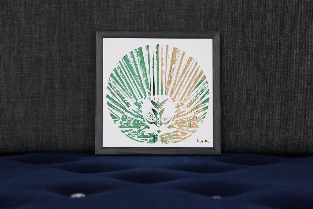 Technique: The green and beige “outline” is made in the technique “Screen print