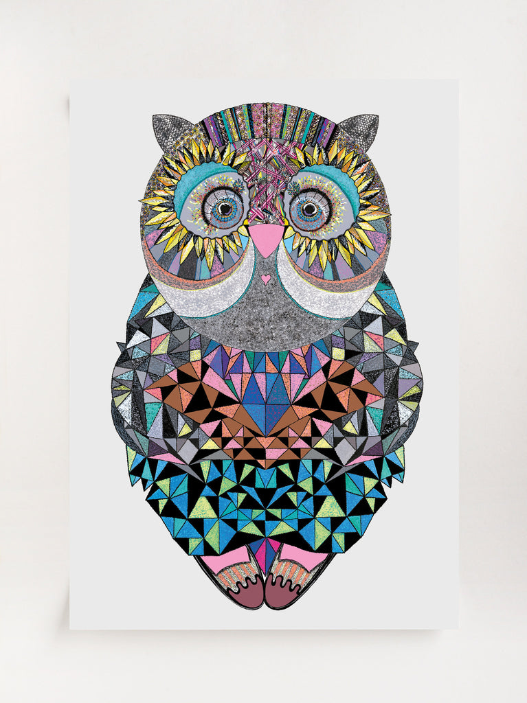 Bent owl is printed in offset and contains different specials colours such as silver and different rose scale colour.