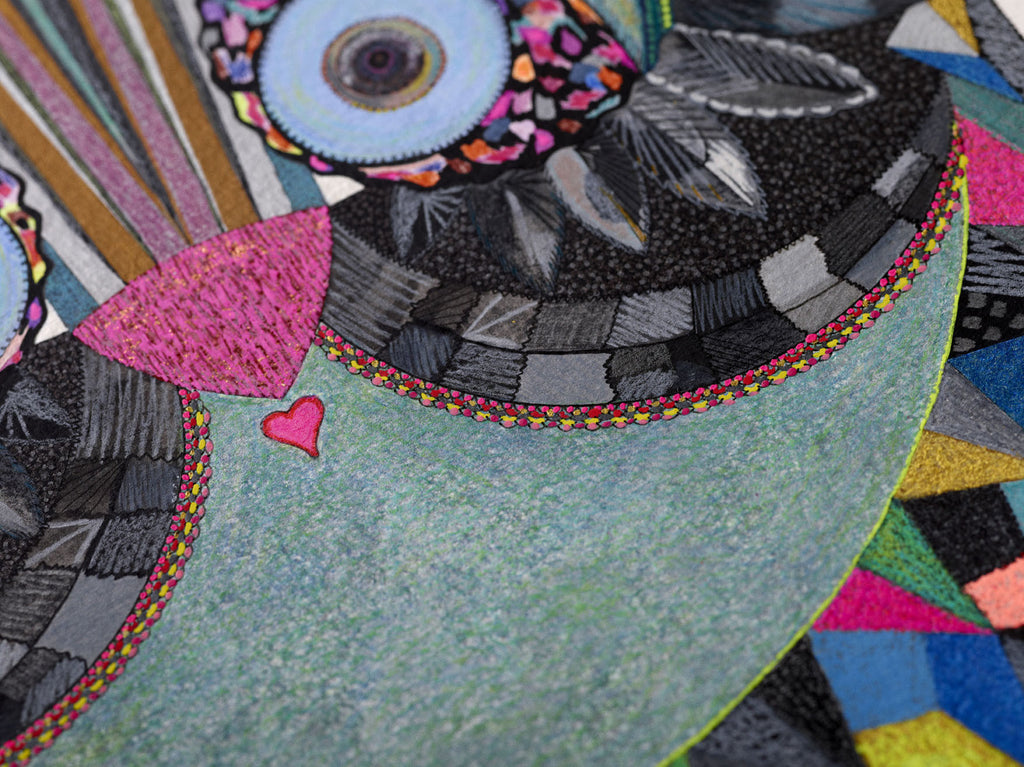 Colour use: Designer Gouache, Colour pencils, Wax pastels, Finest artist`s acrylic, watercolours, Molotow, Pigma Microne ink pencils